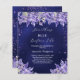 A navy blue background, the blue color is uneven. Decorated with lavender borders and colored faux glitter dust. Personalize and add a name and party details. Text: Something blue befor I do.