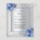Faux silver looking background decorated with blue roses, flowers and confetti. Personalize and add a name and party details. Black letters.