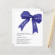 An elegant white background, decorated with large dark blue bow. Personalize and add a name and party details.