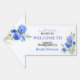 Elegant arrow-shaped welcome sign featuring a soft blue iris floral design and a personalized bridal shower message. Perfect for directing guests and decorating the entrance to a Something Blue “Before I Do” bridal shower, this sign adds a charming and coordinated touch to your event decor.