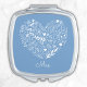 This exquisite compact mirror features a white floral heat design on a dusty blue background, making it a perfect accessory for any modern stylish bride. Personalize this elegant keepsake with Mrs, initials, monogram, or name. This versatile piece could serve as a thoughtful bridesmaid gift, bridal shower gift, or something blue for the bride.