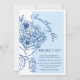 Elegant and charming, this soft blue bridal shower invitation features delicate floral hand drawn artwork. Perfect for celebrating the bride-to-be, it sets a graceful tone for a “Something Blue Before I Do” gathering.