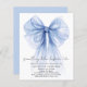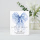 Budget-friendly bridal shower invitation featuring a beautiful hand-painted watercolor of a large blue coquette bow, "something blue before I do" in a chic script, and the bride's name and the event details in simple modern lettering. This budget semi-gloss paper is similar in weight to photo paper. A larger 5x7 traditional card stock version is also available (message us for the link).