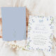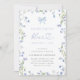 Plain white envelopes are included with paper invitations and will come to fit the invitation size you select. If you don’t need the envelopes, you may choose to not receive them by selecting the dropdown below "Envelopes" and choosing "None." If you’d like to have a design on your envelopes, you can browse all of these available envelopes to find the design that complements your Something Blue Floral Bridal Shower Invitation.
