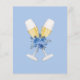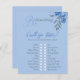 Elegant Calligraphy Script Something Blue Bridal Shower Themed Wedding Would she Rather Funny Game with watercolor flowers. On the other side there are a glasses of champagne with a bouquet.