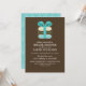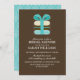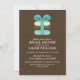 Stylish and chic invitations feature a cute vector illustration of six brown, beige, and blue or aqua french macaron cookies inside a gift box with a bow on top. Visit our store for more color options and matching products.