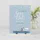 A happy save the date announcement featuring the wedded couple off in a convertible car with the back showing the chapel. The card is easy to customize with your wording, font and font color. Not exactly what you're looking for? All our products can be custom designed to meet your needs at no extra charge. Simply contact us at askpixieprints@aol.com. Coordinating products available at your request at no additional charge.
