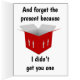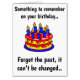 Something to remember on your birthday..Forget the past, it can’t be changed..And, forget the present because I didn’t get you one. A funny birthday card for your girlfriend, boyfriend, friend or family member. Customize it with your text, image or background.