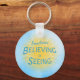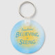 This inspirational keychain is more than just a way to keep track of your keys—it’s a daily reminder that faith unlocks the door to possibility. The words “Sometimes Believing is Seeing” shine in a brilliant blue—the color of a bright new day—bursting from a golden sun against a soft sky-blue background. Just as faith lights the way before the path is revealed, this uplifting design encourages confidence, optimism, and trust in the unseen.