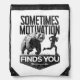 Sometimes Motivation Finds You Funny Running Motiv Drawstring Bag