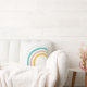 A Mint and Merit Design. Somewhere Over the Rainbow Pillow. Colorful Teal, Pink and Yellow color for Baby Nursery or Kids Room. If this item brings you joy, say hi @mintandmerit on instagram.