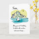 A sailboat sails past a cityscape on the front of this card that was designed to greet your son a happy 50th birthday and to send him a simple heartfelt message.