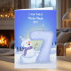 Bright winter joy fills this 7th birthday scene as a cheerful snowman shows off the tall snowy “7” sculpted just for your daughter’s big day. Soft, leaf-shaped trees frame the background, bringing a gentle seasonal touch to the artwork. The cool winter tones, playful textures, and warm expression create a sweet, memorable design perfect for son who adore snowy magic. A lovely choice for anyone searching for a whimsical winter 7th birthday card for a special boy.