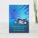 Happy birthday son-in-law card with a motorbike. A perfect card for a biker. A blue motorbike with a stylized sunset and flying birds. Any bike enthusiast will love to get a card like this.