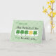 The luck of the Irish is filling this card through the green and one gold shamrock. Perfect card to send to your son on St. Patrick’s Day!