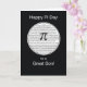 Send your son Pi Day wishes with this black card. A white circle is filled with the irrational numerals of Pi as the symbol is shown in front.
