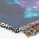 A quality printed throw has its advantages. This is a much finer weave throw than its loopier cousins, and though lighter, it is worth the investment for custom room accessorizing. The back is much prettier than the typical brown, and the fringe on the long sides very vivid, the selvage nicely done. Before photographing, I washed the throw in cold water, delicate, with a thicker woven throw the same size. On tumble dry low, this throw was dry in half the time as the other. This is a very practical quality if you use throws for furniture covers or to wrap up in frequently. The sleekness of the fabric makes it a great layer for accenting or protecting without the feeling of sitting on too much stuff. Perfect for napping or when you feel a light chill coming on. The color printing is beautiful and on this fabric, matched the design and color of my Photoshop image. This is an advantage for blending room fabrics and colors. The fringe on the short sides prints the colors from the design image and therefore varies from the side fringe. I streaked a white fractal line through the plaid pattern to give the illusion of weaving. This printed as crisp as an illusory thread, and put some white in the short side fringe, showing another advantage of print vs loomed- for artistic purposes, line lines, detail, and color integrity can be planned and preserved. My loomed throws have color limitations and more of a needlepoint texture. Print throws reproduce an exact image. The throw felt a little stiff straight out of the package, but this went away in the first delicate wash. Of course I searched the wash water for ink or bleeding and there was none.