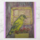 A yellow songbird in a window box filled with colourful flowers from a original watercolour