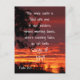 This inspirational postcard shows a spectacular California sunset rich in red and gold colors. It also shows the Bible verse Psalm 65:8 which says, "The whole earth is filled with awe at your wonders; where morning dawns, where evening fades, you call forth songs of joy!"