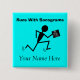 Funny Sonographer Name Badge pin, customizable. Stickman running with sonogram, "Runs With Sonogram". Add name to the bottom OR REMOVE WORDING.