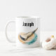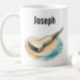 A personalised coffee mug featuring a name or custom text above a watercolor ultrasound probe with concentric sound waves in teal and orange. Made for sonographers, ultrasound technologists, sonography students, and anyone who works in the ultrasound department. A unique professional design that shows pride in the work and makes a very meaningful gift.
