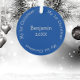Sons First Christmas Photo Blue And Silver Name Ornament