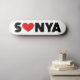The name Sonya with the letter o replaced with a red love heart. The colours can be changed.
