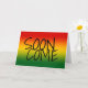 The famous three-toned stripe colours synonymous with Jamaican culture creates the perfect background for the all-caps Jamaican phrase, SOON COME.