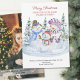 Christmas card pregnancy announcement with due date of new baby. The wording reads "Merry Christmas from our soon-to-be famly of three!" (which you can edit if you wish), followed by your personalized christmas greeting. This watercolor design features 3 cute snowmen with a backdrop of christmas trees. The photo template is set up for you to add a pregnancy photo or sonogram ultrasound picture on the back with baby due date or your custom text. Your photo is displayed in vertical portrait format so if you have any problems with picture placement, try cropping to the relevant shape and re-uploading.