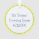 Birth or Pregnancy announcement. Cute blue and green themed Christmas ornament with two twins in blue and green. Twin boys announcement. Personalized the due date on the back.