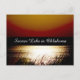 A postcard featuring a photo of a sunset over Sooner Lake in Oklahoma.