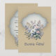 This birthday card is illuminated with golden sandy tones, evoking the softness of an afternoon light and the natural charm of a rustic setting. The flowers, painted in delicate pastels, add a touch of subtle freshness, while the tender green foliage envelops the whole with a sense of calm and lightness.