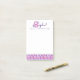 Sophie personalized S name meaning or message post-it notes. Initial S monogram name and meaning in purple, pink and white. Ideal for a personalized gift for a girl who has a name that starts with the letter S. This example reads Sophie Great wisdom. Astute, intelligent & beautiful or you can customize the text with your own name or message if required. Makes a unique office celebration gift. © Decorative letter S flowers with hearts hand-drawn and pattern uniquely created by Sarah Trett for www.mylittleeden.com