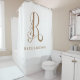 Simple but sophisticated and elegant. White curtain with a beautiful R monogram and last name personalization.