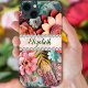 The design presents an intricate arrangement of 3D flowers in a refined palette of colors, including shades of pink, blue, salmon, red, and yellow. This composition brings together the grace of flowers in a symphony of color that captures the essence of nature's beauty. The glass texture adds depth and authenticity, enhancing the visual appeal and providing a tactile experience. A stunning diamond frame stands ready for personalization, inviting you to add your name and make this case truly your own.