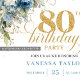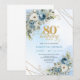 Sophisticated 80th Birthday Invite Dusty Blue Gold