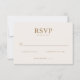 This elegant wedding RSVP card features a minimalist design with ample negative space, creating a clean and sophisticated look. The soft beige background complements the muted gold typography, which includes a large "RSVP" at the top and options for acceptance or decline in delicate script font. The layout is modern yet classic, perfect for formal events, emphasizing clarity and simplicity without any additional motifs. Its refined aesthetic conveys sophistication, making it ideal for significant occasions where attention to detail is paramount.