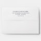 This wedding envelope features a minimalist design with a clean, balanced layout on a white background. The black text is arranged in a centered format, using a combination of serif and sans-serif fonts to create an elegant contrast. The typography emphasizes clarity and sophistication, making it perfect for formal occasions like weddings. Its simple yet refined style conveys a timeless and professional mood, ideal for those who appreciate understated elegance.