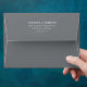 This wedding envelope features a modern, minimalist design with a sleek black background and crisp white text. The layout is simple and centered, showcasing clean, sans-serif typography that emphasizes elegance and sophistication. Perfect for couples who appreciate understated style, this envelope combines functionality with a contemporary aesthetic, making it ideal for formal occasions. Its monochromatic color palette enhances readability while conveying a timeless and professional tone.