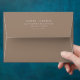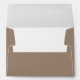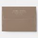 This wedding envelope features a minimalist and contemporary design with a solid brown background. The layout is clean and balanced, showcasing centered white text in a modern sans-serif font that emphasizes clarity and elegance. With ample spacing between lines, the design conveys sophistication and formality, making it perfect for special occasions like weddings. Its simple yet stylish aesthetic ensures readability while maintaining an uncluttered look, ideal for those who appreciate understated beauty.