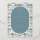 This elegant wedding invitation features a central oval frame with a textured background of abstract geometric patterns in soft blues, creamy beiges, and crisp whites. The design combines modern minimalism with vintage charm through clean lines and smooth gradients, creating a sophisticated yet inviting atmosphere. Classic serif typography is used throughout, emphasizing the main names while maintaining readability for all details. Surrounding the oval are repeating triangular shapes that add dynamic movement and balance to the layout, making it perfect for celebrating a significant event like a wedding.