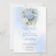 Set the tone for a stylish and unforgettable celebration with this watercolor blue and gold wedding invitation, designed around today’s most trendy wedding color palette. Featuring soft pastel, powder, light, and pale blue hydrangeas, paired with fresh eucalyptus greenery and elegant gold floral accents, this design captures modern romance with timeless appeal.