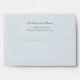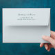 This wedding envelope features a minimalist design with centered text on a plain white background, creating an elegant and uncluttered look. The names are written in a flowing script font in a soft greenish-blue color, while the address is presented in a clean sans-serif font for clarity. The overall style is modern and understated, perfect for conveying sophistication without unnecessary embellishments. Ideal for couples seeking a refined yet simple aesthetic for their special day.