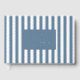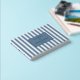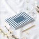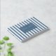 This wedding guest book features a classic nautical theme with vertical stripes in two shades of blue, creating a crisp and elegant look. The design includes a central navy rectangle that highlights customizable text in a clean, modern sans-serif font, perfect for personalizing the occasion. The minimalist style emphasizes simplicity and sophistication, making it ideal for weddings or formal events. The calming blue tones evoke reliability and serenity, while the structured layout adds an air of precision and order.