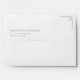 This wedding envelope features a minimalist design with a clean, elegant layout. The color palette includes muted browns and light grays, creating a sophisticated and understated look. A stylized geometric symbol in the top right corner adds a touch of traditional East Asian flair, while classic serif fonts provide a formal yet modern feel. Perfect for couples seeking simplicity and refinement, this envelope is ideal for weddings that celebrate timeless elegance.