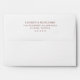 This wedding envelope features a minimalist and elegant design with a clean white background. The layout is simple, showcasing customizable text in a classic serif font arranged neatly for clarity. A muted brown color palette adds sophistication without distraction, emphasizing the focus on essential information. Perfect for weddings, this design conveys an understated elegance that complements any formal occasion.