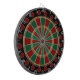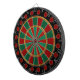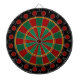 A regulation size dart board in shades of blood red, pine green, gold and black that has been given the appearance, through delicate shading, of having been made with Ostrich Leather and gold. Result is a sophisticated look that will impress everyone - even your mother! Comes with 6 brass darts and hanging hook.