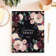 This elegant design showcases a luxurious arrangement of florals in rich plum, cream, blush, and navy tones, set against a dramatic black background. The personalized name and year add a refined and unique touch, perfect for professionals, students, or anyone who loves classic and timeless floral art. Ideal for organizing tasks, journaling, or planning with a sophisticated and artistic flair. A stunning combination of bold color and elegance for everyday use.