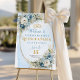 Welcome guests in elegant style with this beautiful Quinceañera / 15th birthday welcome sign or poster, designed to make a memorable first impression. Featuring soft watercolor tones of dusty blue or pastel blue, accented with shimmering gold details and fresh greenery or eucalyptus, this design blends tradition with modern elegance. The refined color palette creates a graceful atmosphere that perfectly honors a young woman’s special celebration.