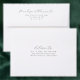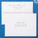 These wedding envelopes feature a minimalist design with elegant typography, perfect for a sophisticated event. The layout is clean and modern, utilizing ample negative space to highlight the soft script fonts and simple serif text. A monochromatic color palette in light charcoal shades adds subtle contrast against the white background, creating an understated yet refined look. Customizable placeholders allow for personalization, making these envelopes ideal for weddings or formal gatherings, conveying a mood of sophistication and celebration.